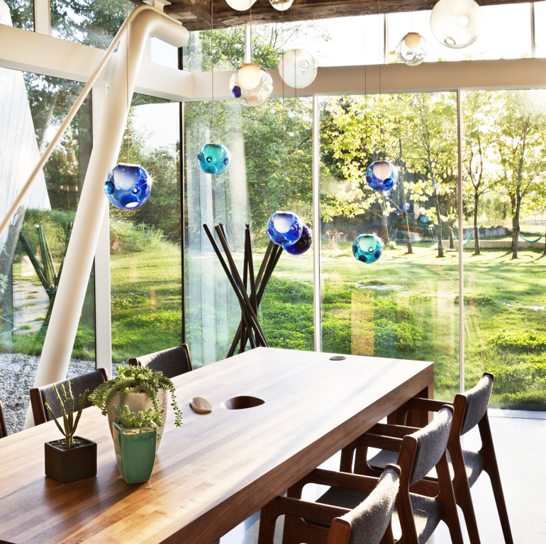 Серия светильников неправильной формы, с маленькими цветными сферами внутри, в одной из которых скрыт источник света. Представлены в нескольких вариантах размера и во множестве цветовых решений. Bocci - канадская компания, существующая с 2005 года. Проекты Bocci можно увидеть в музее Виктории и Альберта и других важных общественных пространствах. Все светильники компании изготавливаются вручную. Каждый светильник из серии 28 уникален.